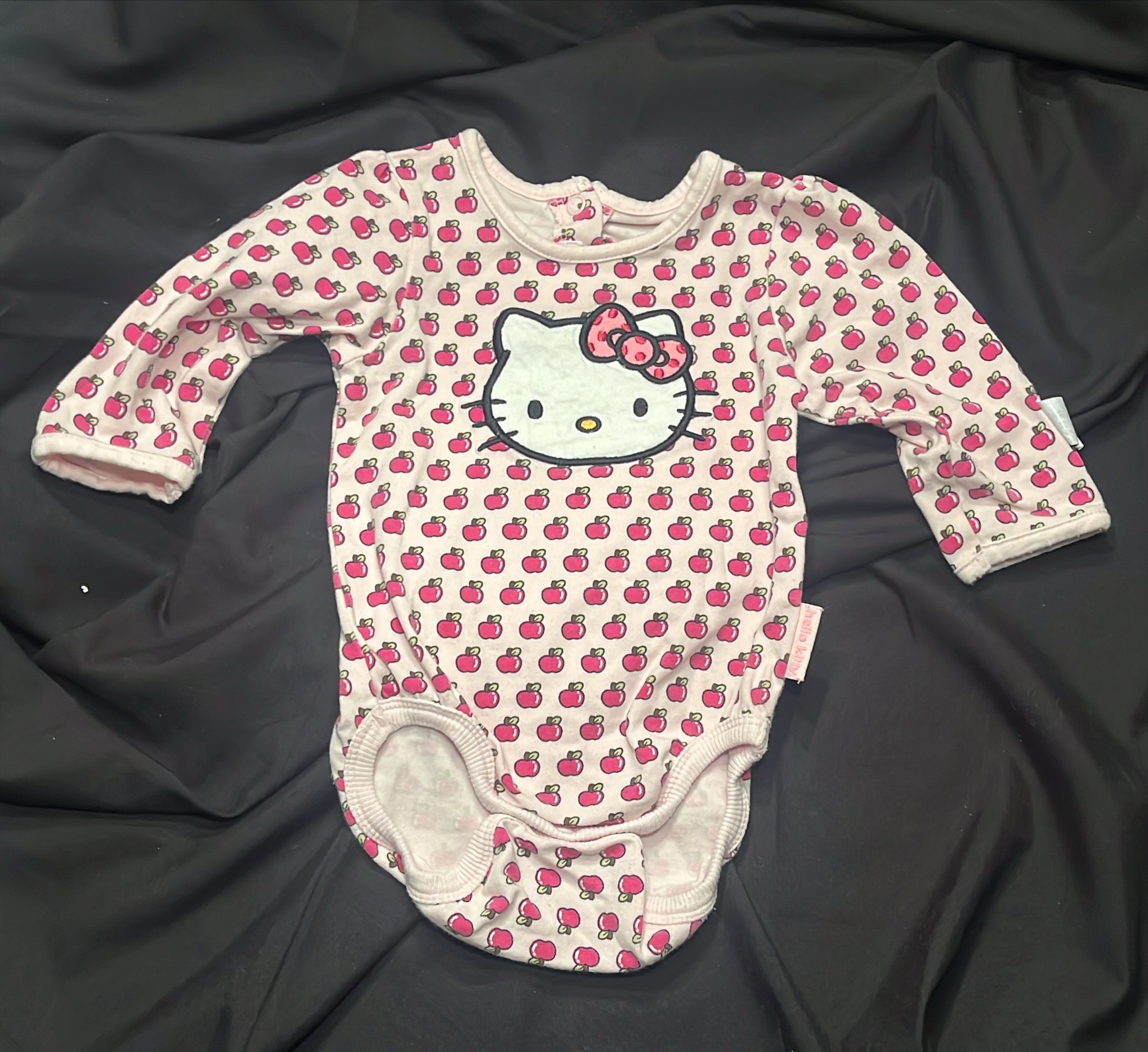 Body med trykknapper bak nakken og brodert bilde av Hello Kitty på fremsiden.