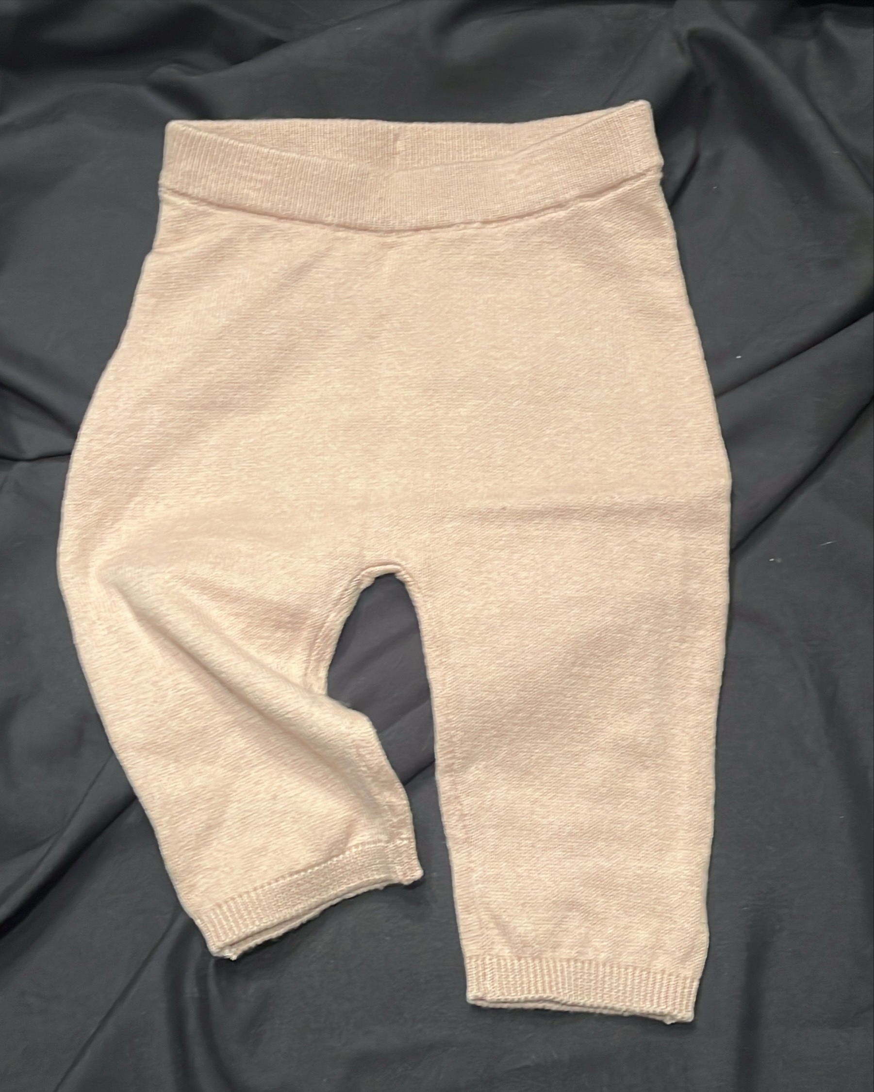 Bukse i velour-stoff. Strikk og snøring i livet.