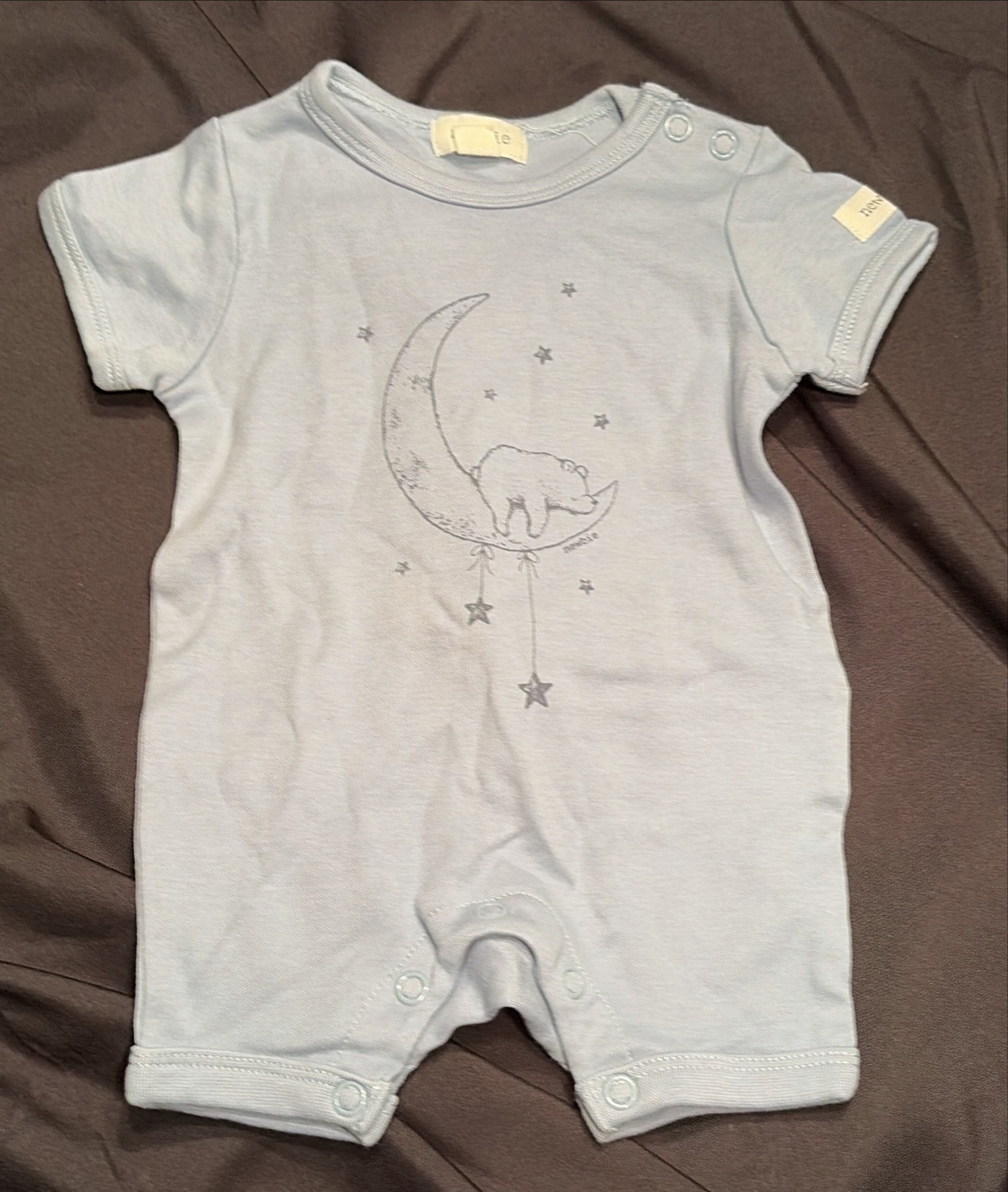 Pyjamas med trykknapper foran og nedover langs det ene benet.