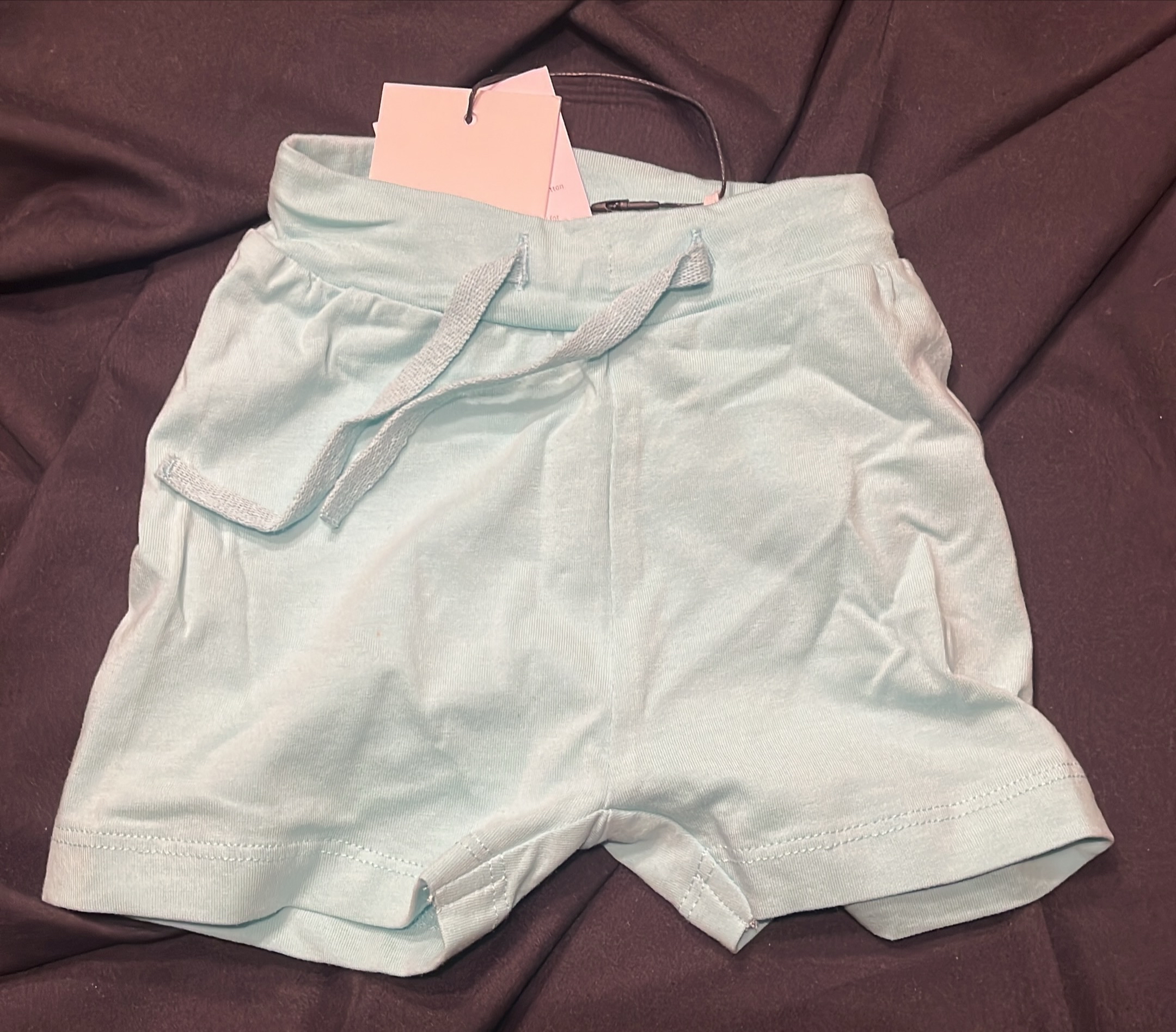 Shorts i myk demin-stoff. Strikk rundt livet og lårene.
